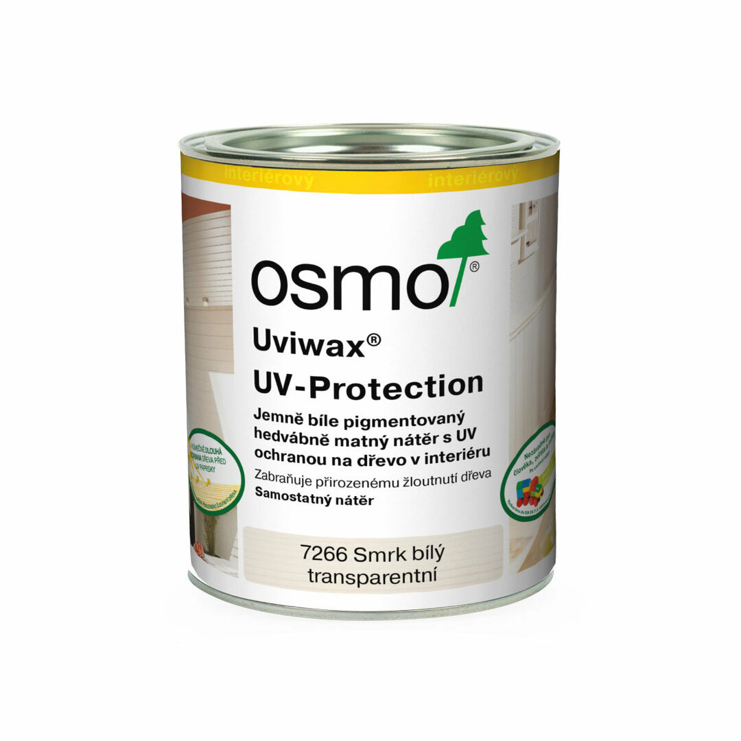 škodlivému UV záření. Přirozené žloutnutí dřeva je významně redukováno a přírodní světlé tóny dřeva zůstávají zachovány po dlouhou dobu.Výrobek Osmo Uviwax® UV-ochrana je odolný vůči vodě a nečistotám, odolný vůči otěru a vytváří na dotyk příjemný povrch. Mikroporézní,nepraská, neloupe se, netvoří šupinky. Po zaschnutí je nátěr neškodný pro lidi, zvířata a rostliny (odolný vůči potu a slinám podle normy DIN 53160,